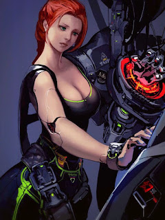 the Shieldmaiden-pattern robot, Elara, approaches Xerxes and his pirate crew. They discuss the possible haul from the place, with Born Riksen, heavy set and jovial in his heavy armor, bragging about his knowledge of the sort of operation going on.