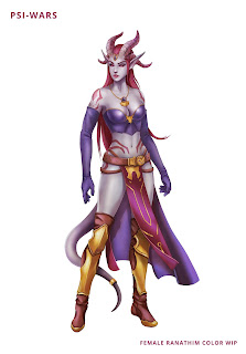 I suspect most readers of Psi-Wars don’t give much thought to the diplomacy of the Umbral Rim, but in a lot of ways, I see it as a dark twin of the Maradonian Alliance. The Umbral Rim is balkanized between the Empire (which controls, or “controls” the Hydrus Constellation), the Tyranny of Sarai in the Corvus Constellation (a puppet regime of the Empire… maybe), and the various infighting factions and cartels of the Slavers. Naturally, they would want to swap diplomats with one another and with the Empire. So, I pondered the sort of diplomats they would send and, naturally, concluded they would send slaves. The slavery of the Umbral Rim is worth a post on its own, and more closely resembles that of the ancient world than more modern examples of slavery (which is not to say that it’s not got its own sort of horrors). Thus one can see slave as more of a class of people, a special category that has nothing to do with status, and I though a slave-diplomat would highlight that well: obviously a Slaver wouldn’t represent himself to the Empire, as the Empire would kill him on sight, but a beautiful, scantily clad Ranathim or wise and sagacious Keleni would have much better luck, and their slavery would give them a keen interest in the negotiations going well, lest they displease their master and face a fate worse than slavery, and would create an interesting contrast between the obvious low-power of the slavery and the seeming high power he or she seems to wield.
