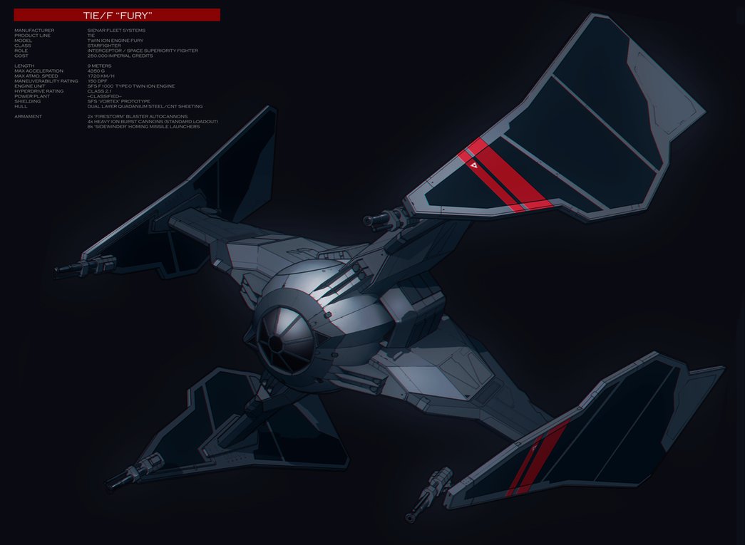 This Typhoon revises the noted problems with the standard Typhoon. The major batteries become fixed, and we replace the two Super Fusion reactors with two fuel cells. This limits their flight-time, but their flight-time was pretty limited before (and does it matter if you run out of power for your lasers?). This also maintains the “reactors on the side wings” design that the Typhoon emulates from the tie-fighter. Finally, Typhoons do not have the listed Emergency Ejection, as their control rooms are [core], which disallows an emergency eject. This trims the cost considerably down to $2.88 million, making it an even more disposable fighter, and better at killing the enemy.